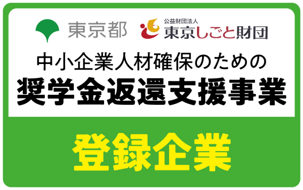本制度は、東京都が実施する「中小企業人材確保のための奨学金返還支援事業」の登録企業として認定されたものです。