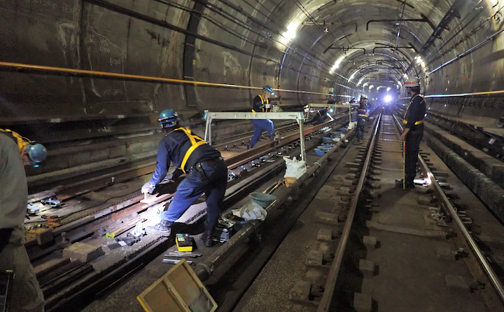 レールは毎日電車が通るたびに摩耗していきます。日々安全に電車を運行するためには定期的なレールの交換が必要となってきます。